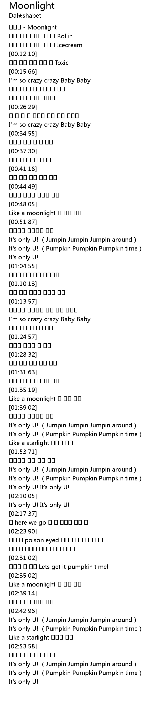 | [02:01.96] | It's only U! (Pumpkin Pumpkin Pumpkin time) |
