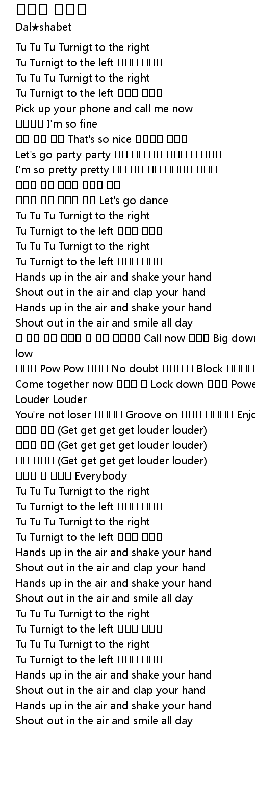 | 네 몸을 던져 걱정은 다 재껴 전화해줘 Call now 놀때는 Big down low | |