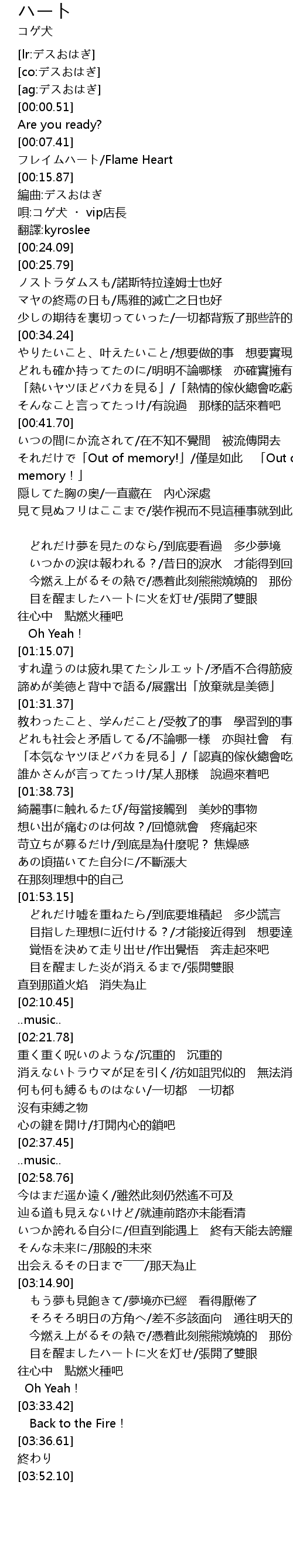 | [00:10.23] | フレイムハート/Flame Heart |