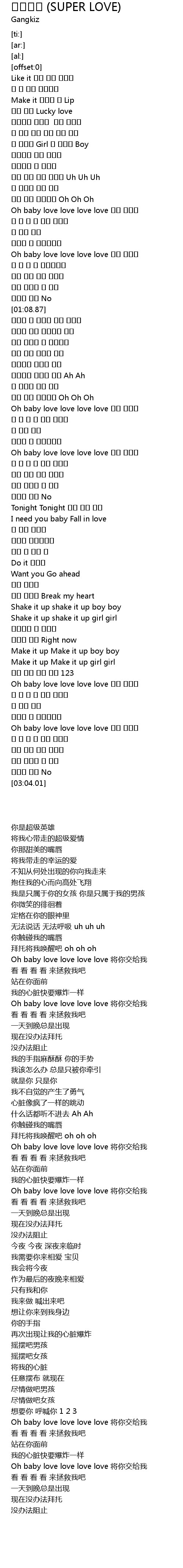 | [01:42.99] | Oh baby love love love love 너를 내게줘 |