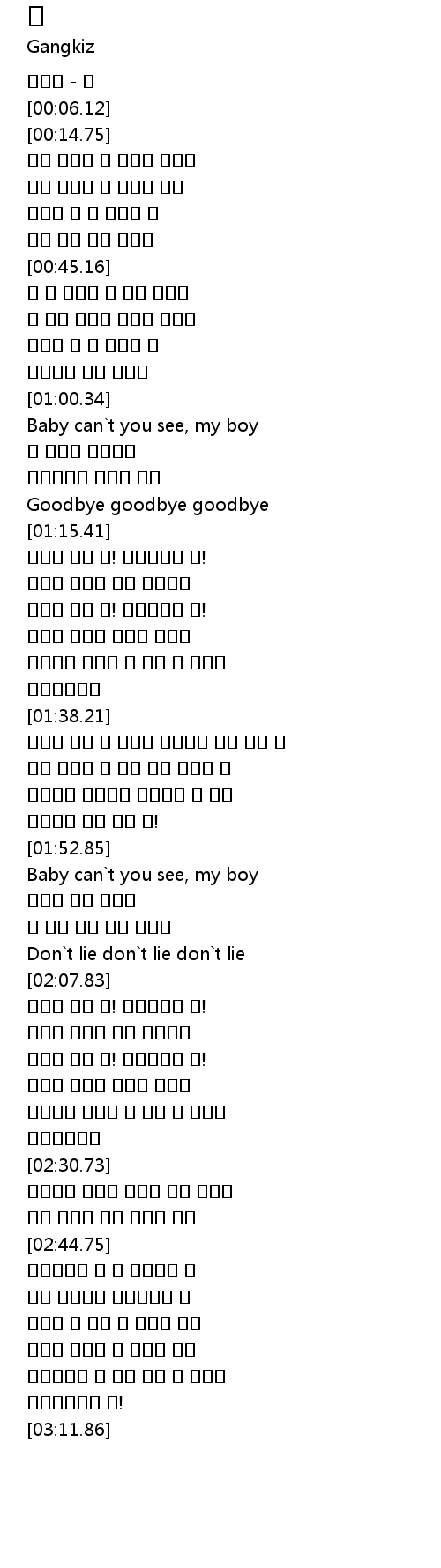 | [02:05.79] | Don`t lie don`t lie don`t lie |