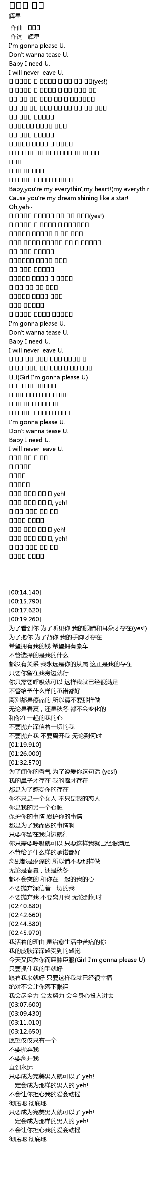 | [00:14.140] | I' m gonna please U. |