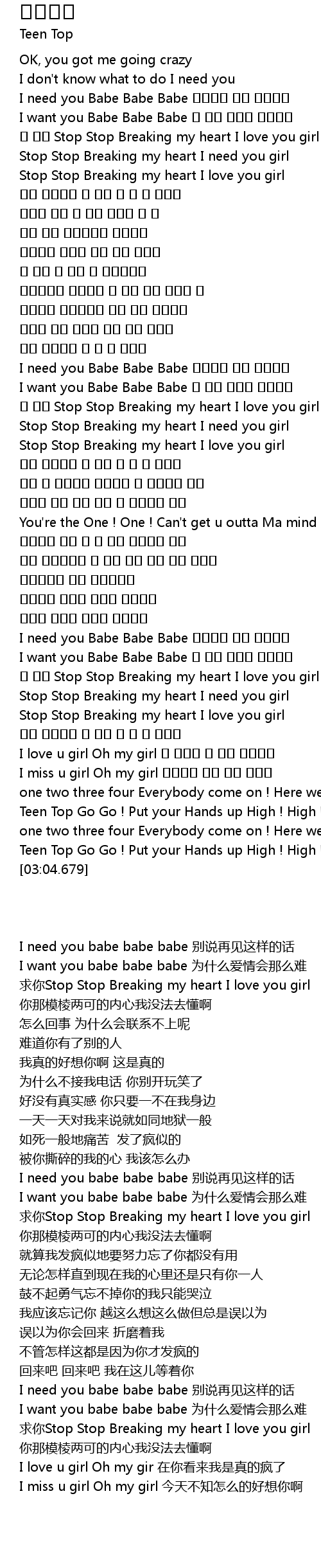 | [00:16.490] | I need you Babe Babe Babe |
