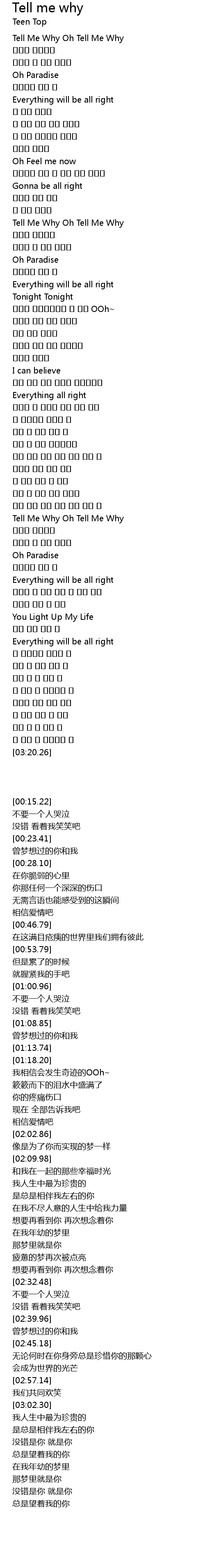 | [00:15.22] | Tell Me Why Oh Tell Me Why |