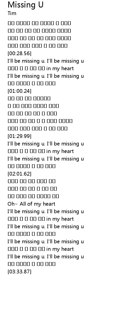 | [03:03.74] | I' ll be missing u. I' ll be missing u |
