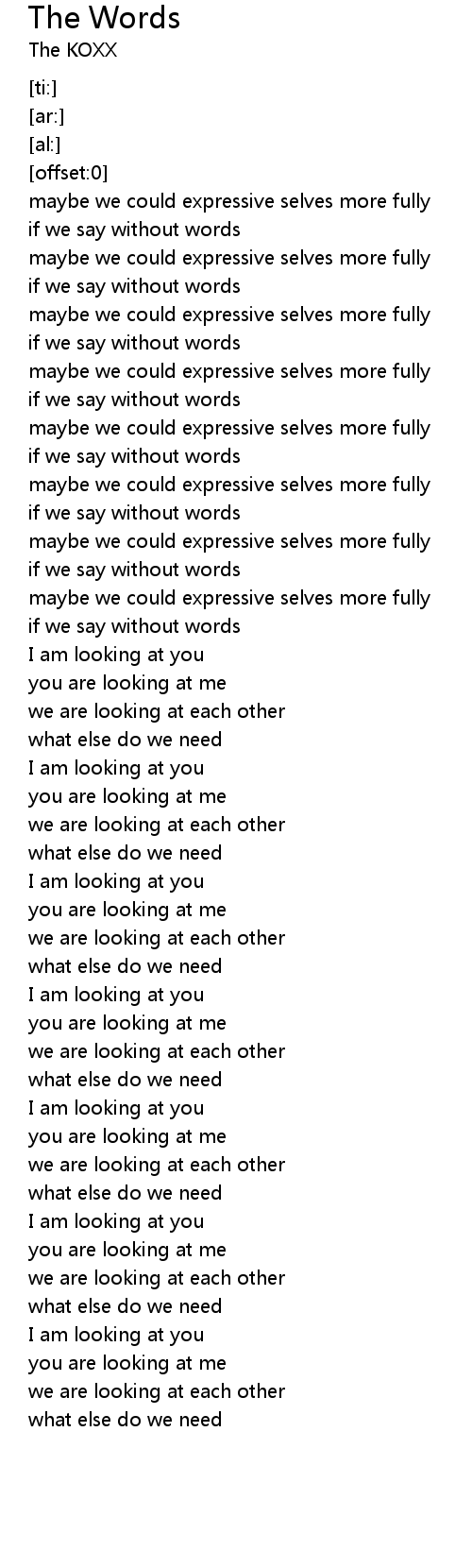 | [05:01.81] | we are looking at each other |