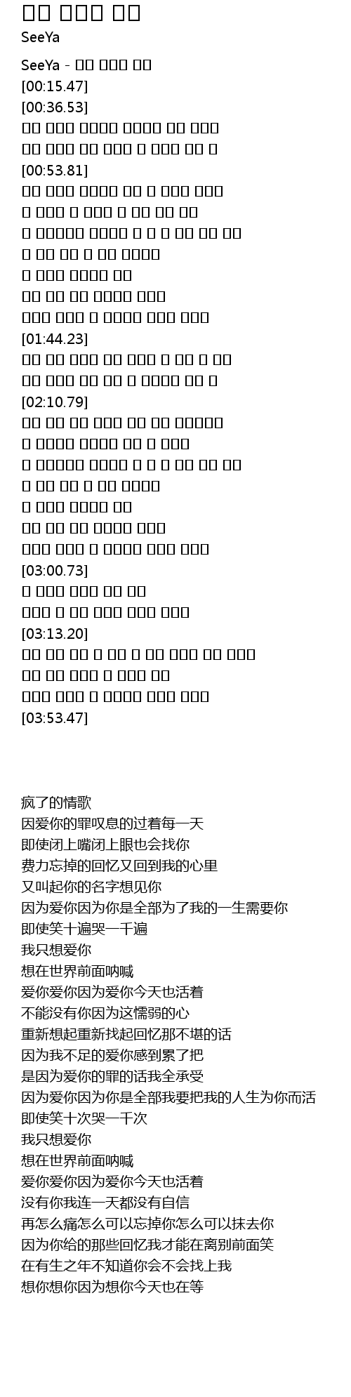 | [00:00.60] | SeeYa - 미친 사랑의 노래 |