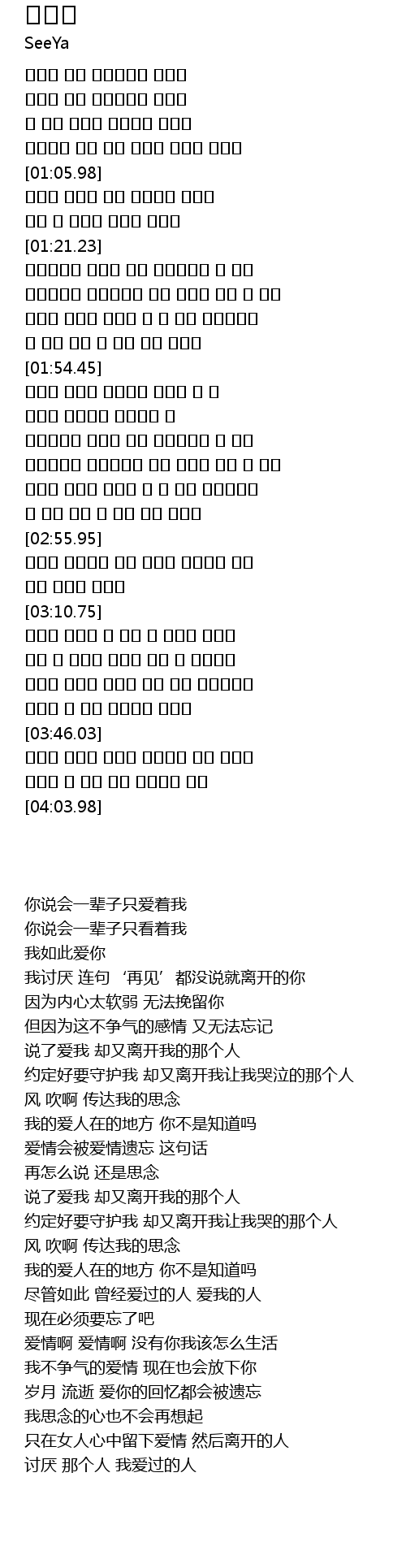 | [03:30.58] | 岁月 流逝 爱你的回忆都会被遗忘 |