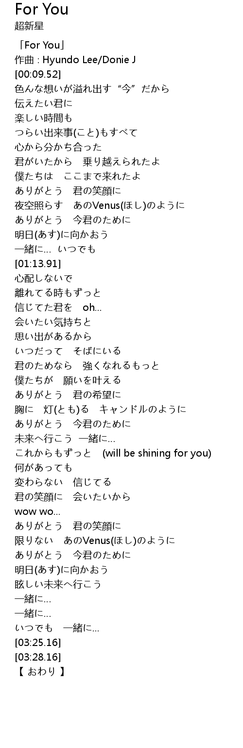 | [02:13.14] | これからもずっと (will be shining for you) |