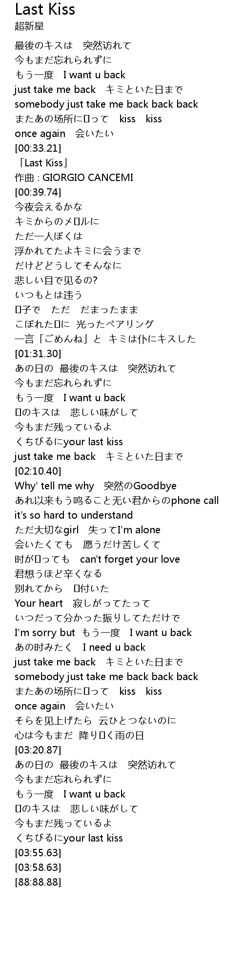 | [02:42.02] | I'm sorry but もう一度 I want u back |