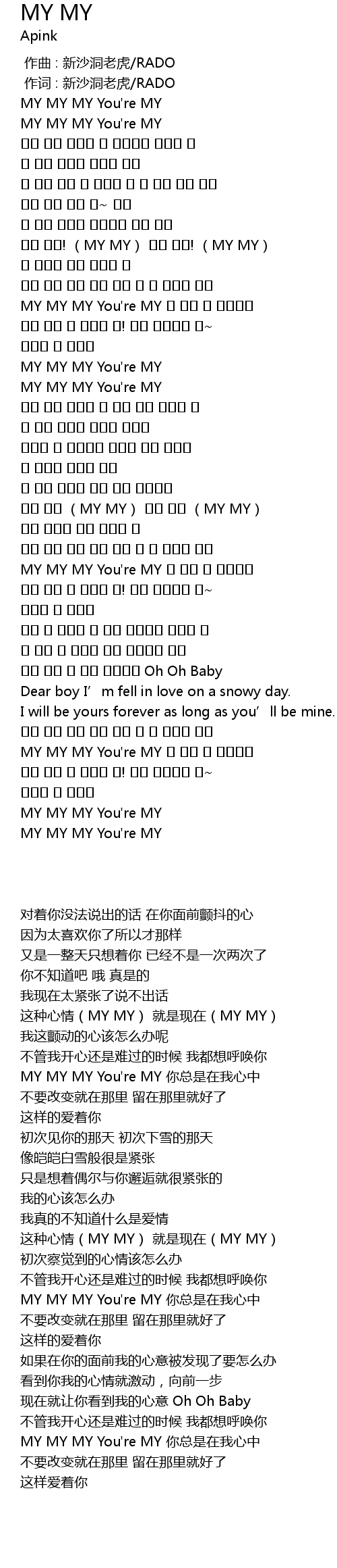 | [02:18.960] | MY MY MY You're MY 你总是在我心中 |