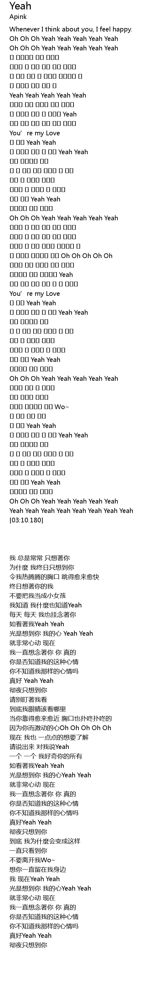 | [01:52.98] | 如看著我Yeah Yeah |