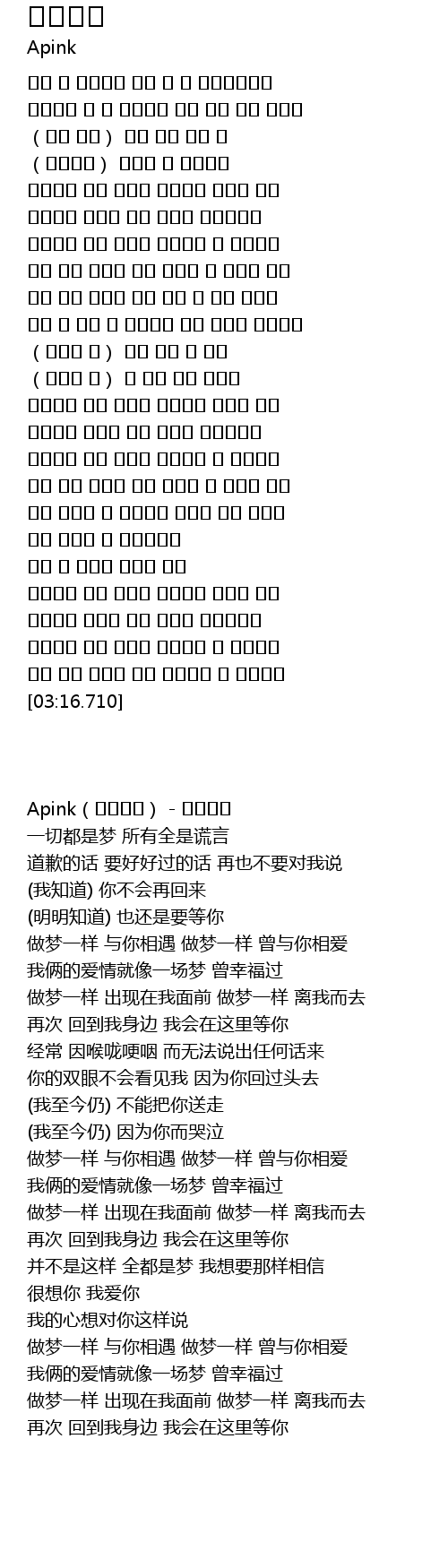 | [00:00.10] | Apink(에이핑크) - 꿈결처럼 |