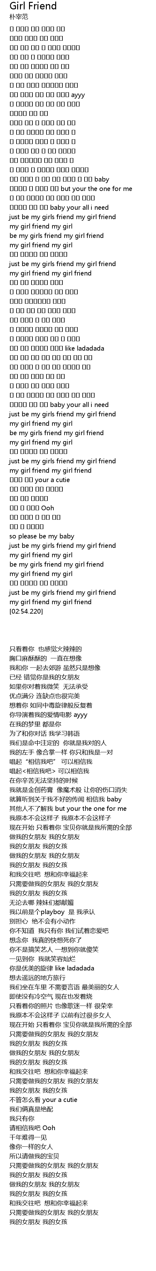 | [02:42.23] | 我的女朋友 我的女孩 |