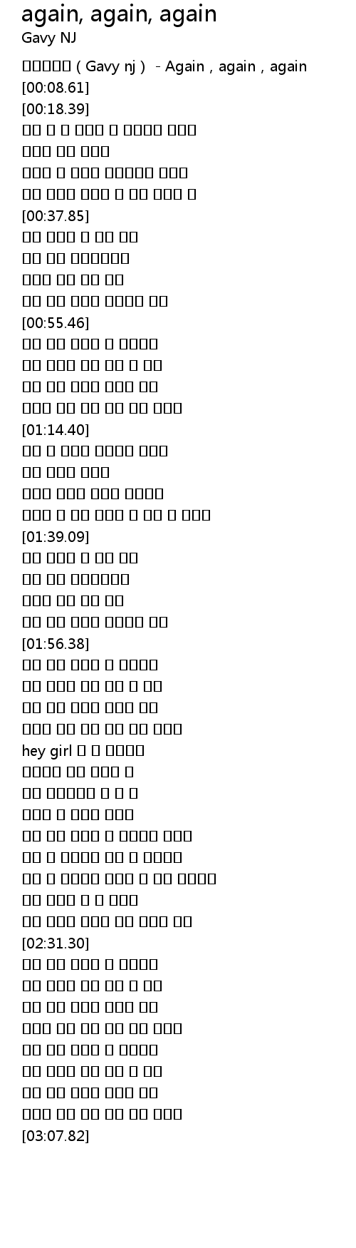 | [00:00.40] | Gavy nj Again, again, again |