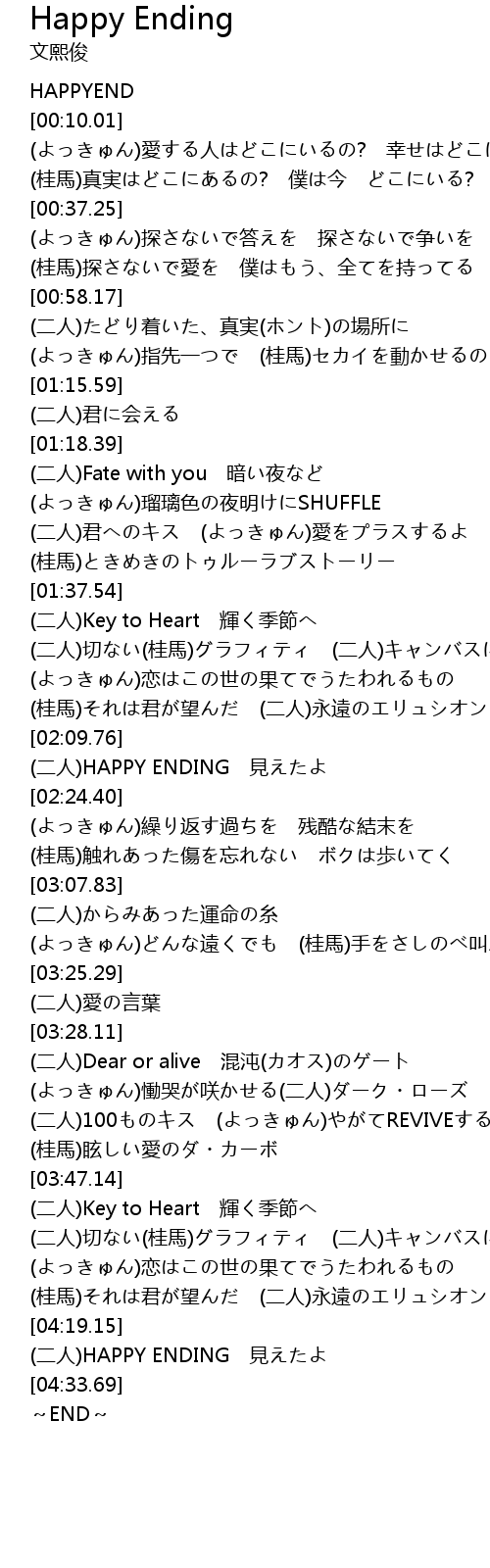 | [04:26.33] | èr rén HAPPY ENDING jiàn |