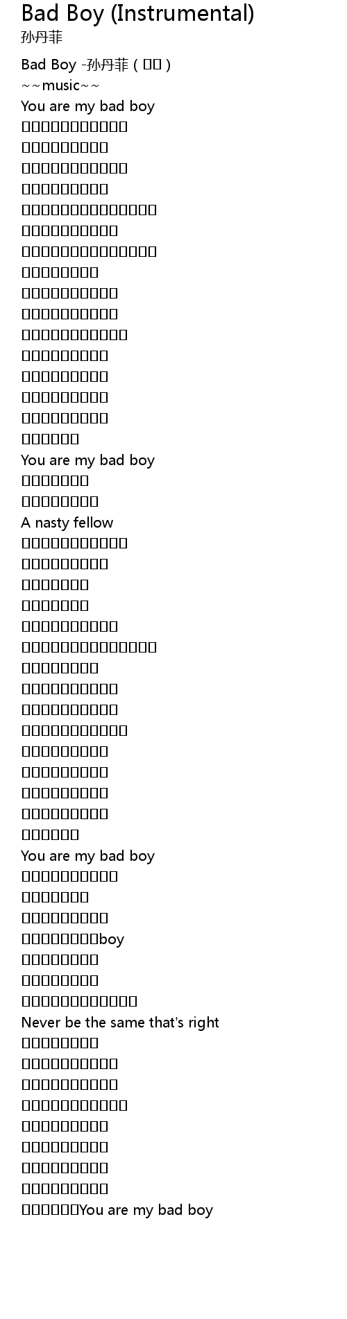| 歌曲 | Bad Boy (Instrumental) |