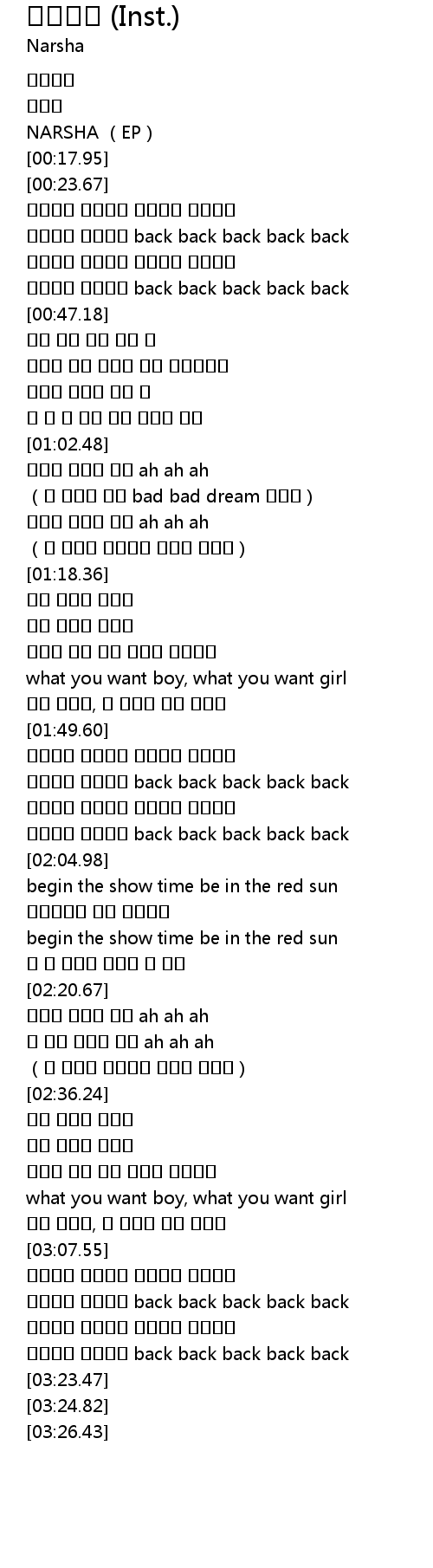 | [03:19.34] | 삐리빠빠 빼리빠빠 back back back back back |
