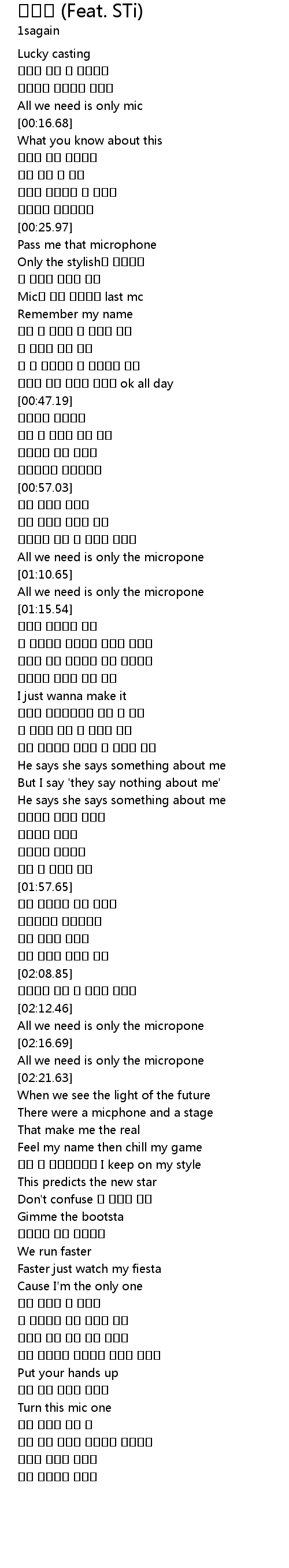 | [00:43.38] | 내게는 오직 마이크 하나면 ok all day |