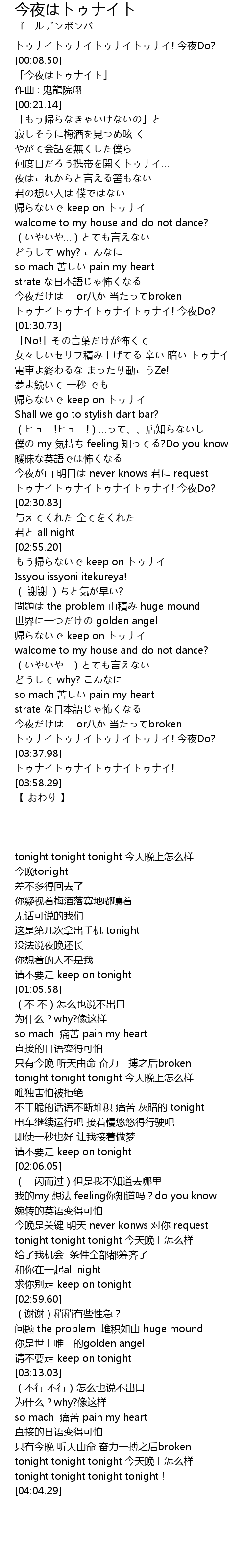 | [03:51.90] | トゥナイトゥナイトゥナイトゥナイ! |