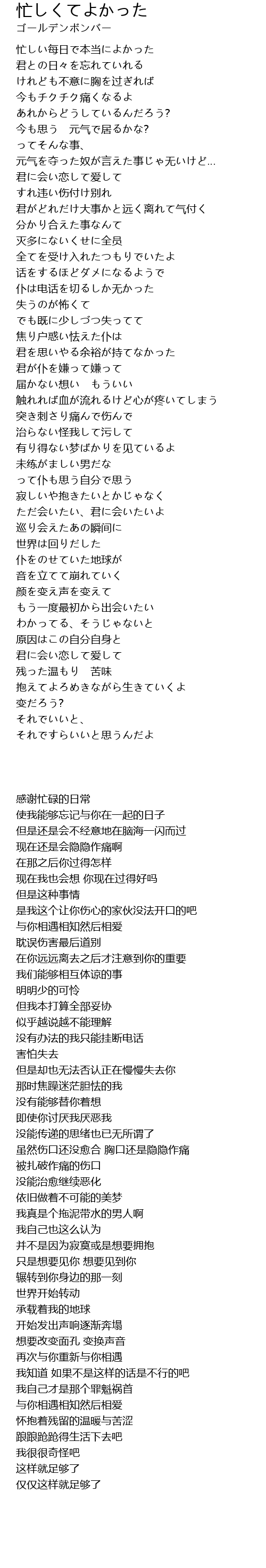 | 歌曲 | 忙しくてよかった |