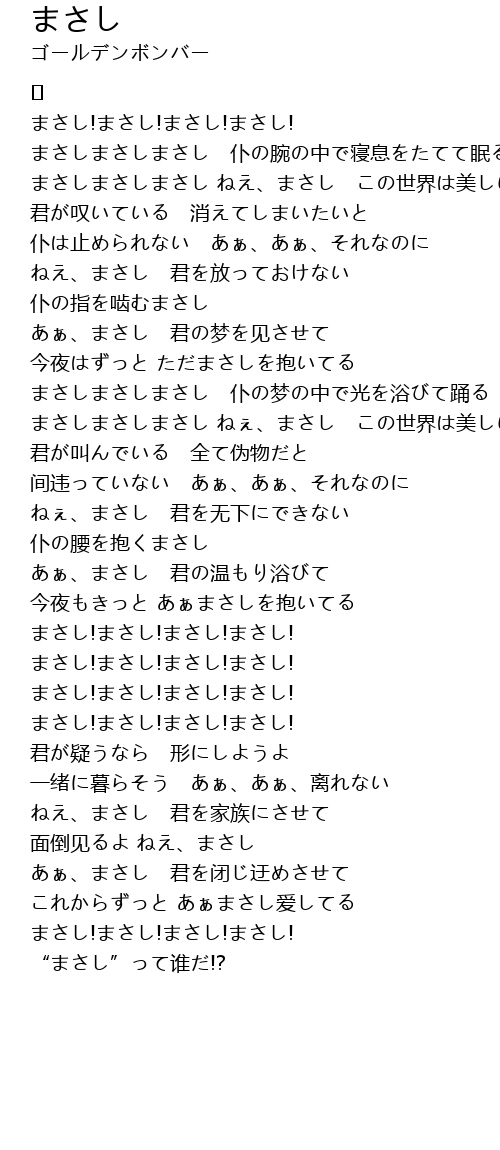 | まさしまさしまさし ねぇ、まさし この世界は美しいね | |