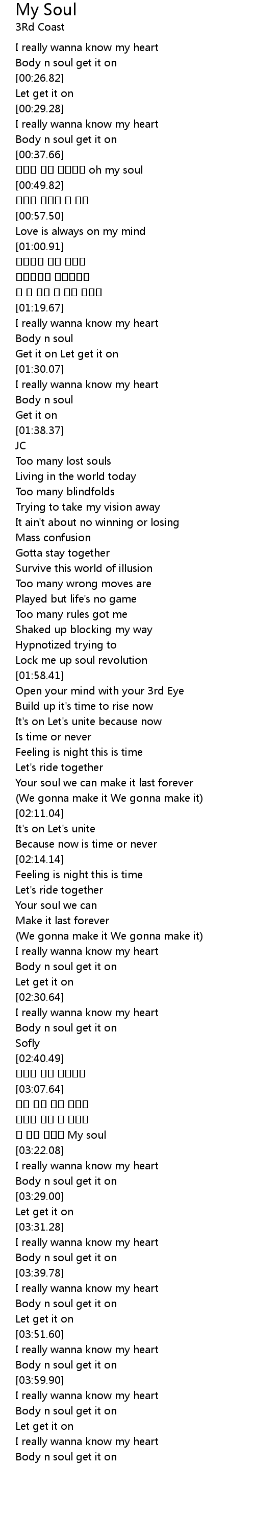 | [03:35.72] | Body n soul get it on |