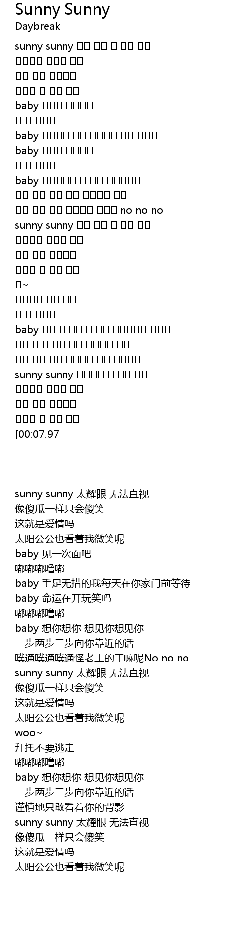| [02:00.16] | sunny sunny 눈이부셔 볼 수가 없어 |