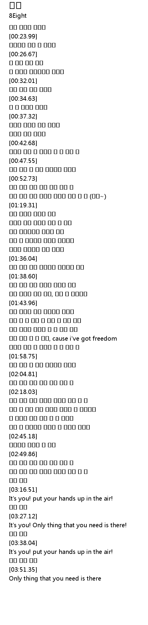 | [03:23.06] | 자유 자유 |