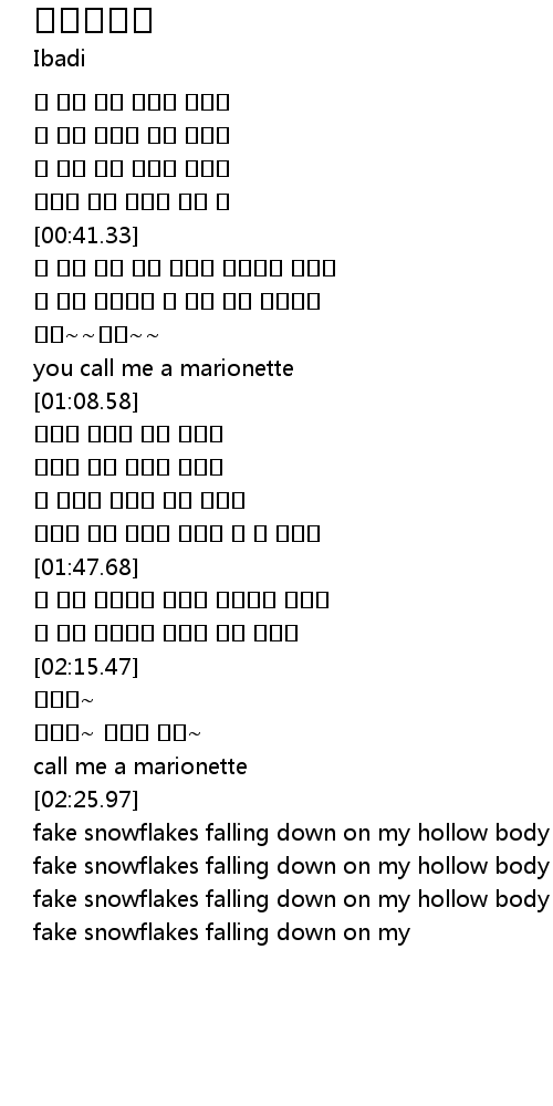 | [02:00.53] | 난 다시 이름없는 거리의 인형이길 바라네 |