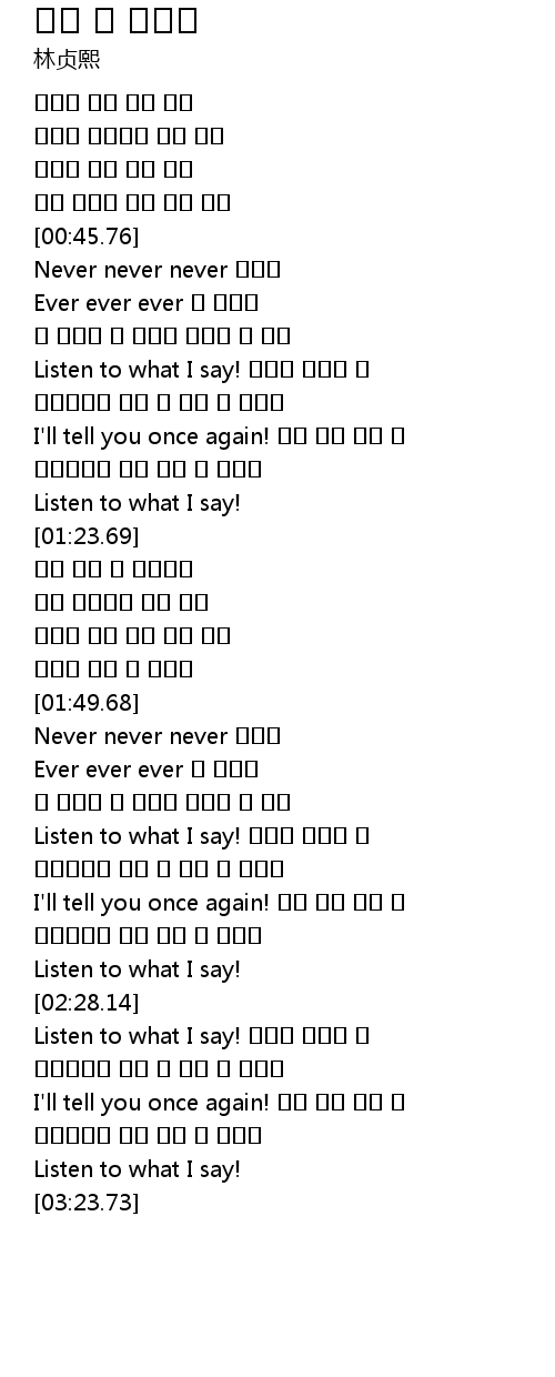 | [00:58.13] | Listen to what I say! 닥치고 듣기만 해 |