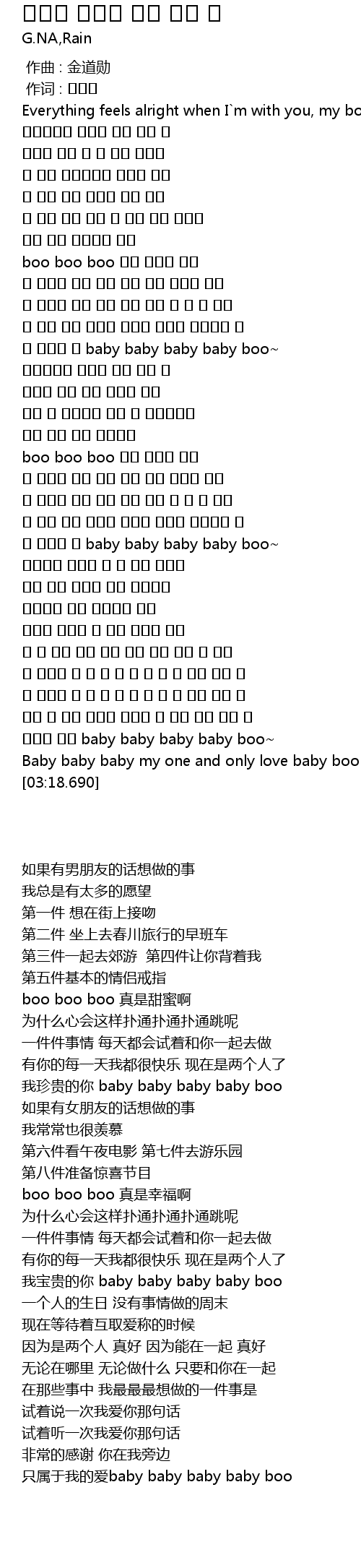 | [03:10.500] | Baby baby baby my one and only love baby boo~ |