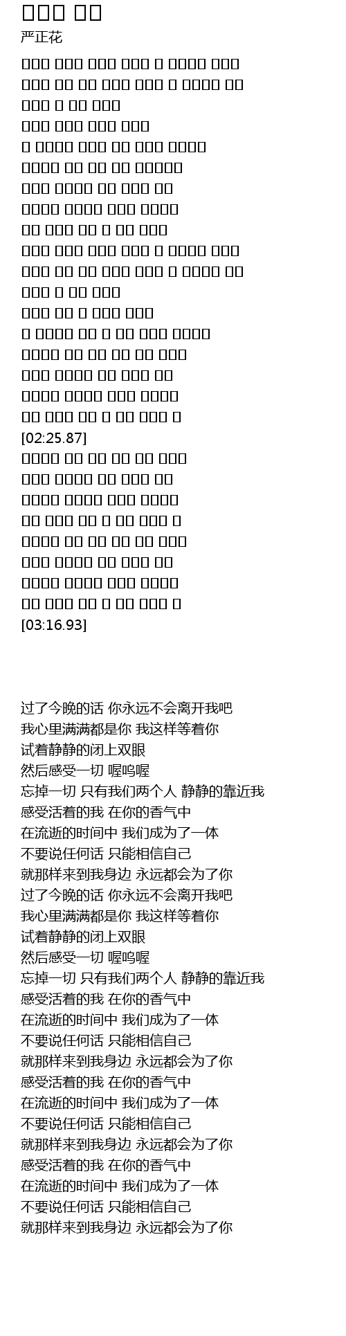 | [00:25.70] | 过了今晚的话 你永远不会离开我吧 |