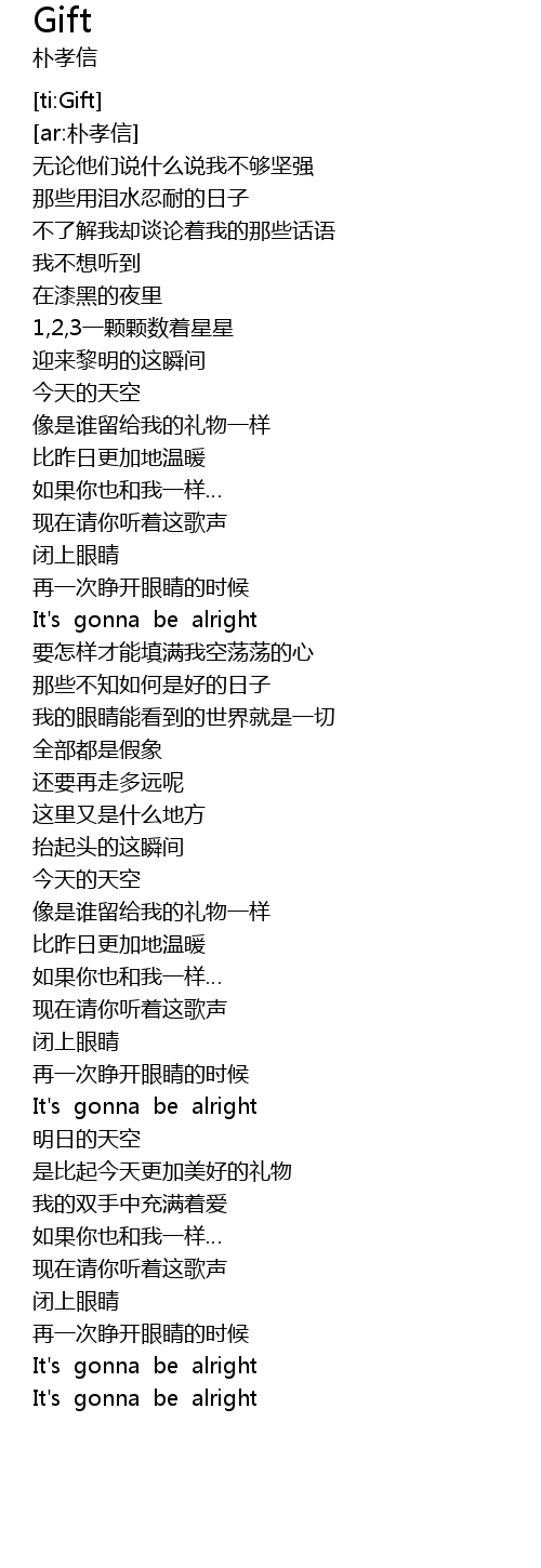 | [00:59.54] | 像是谁留给我的礼物一样 |