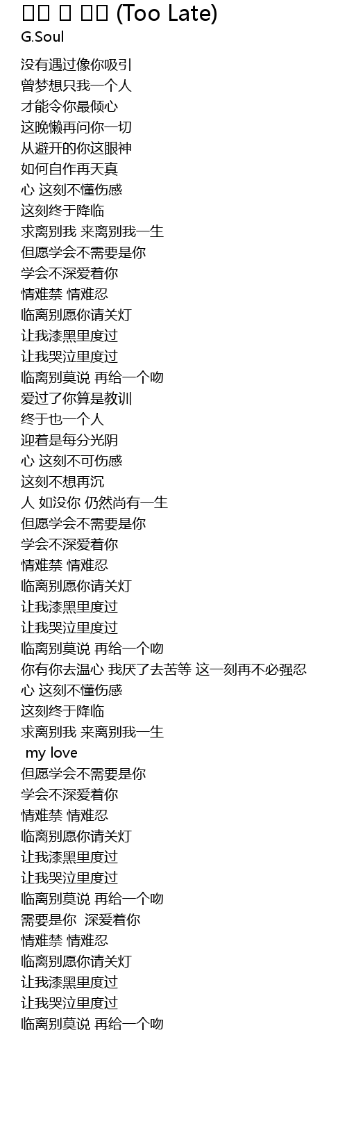 | 歌曲 | 늦게 핀 사랑 (Too Late) |