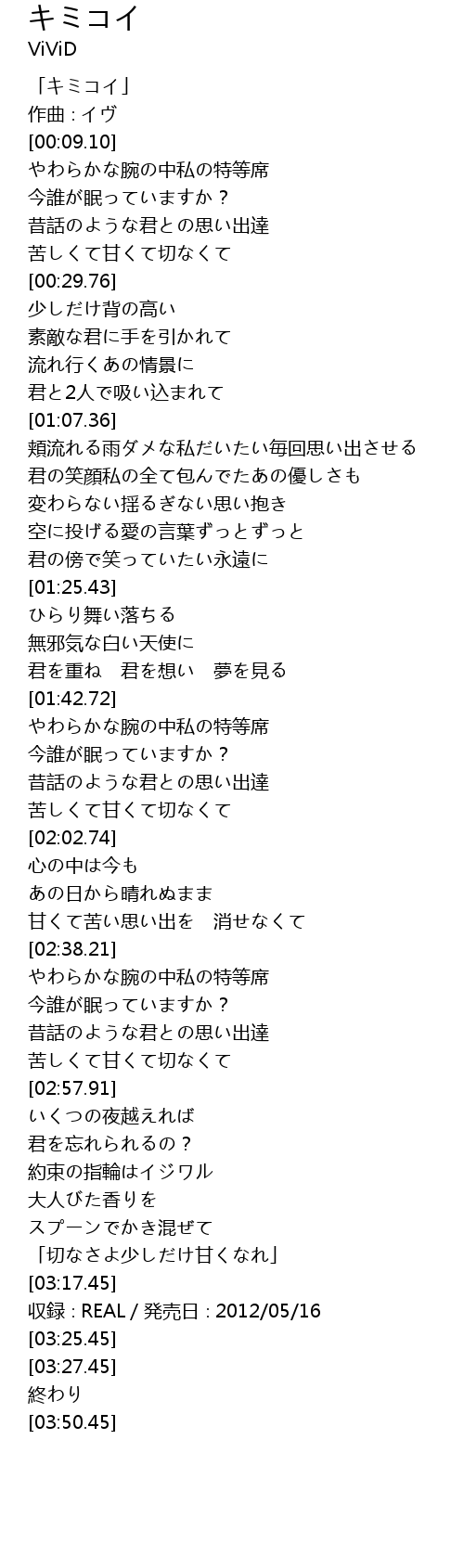 | [03:20.45] | 収録∶REAL/発売日∶2012/05/16 |