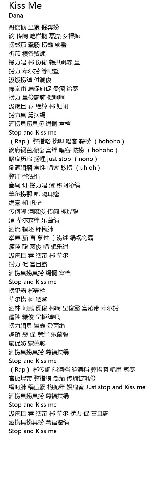 | [03:04.95] | 绢叼肺 绢痘霸 构扼绊 娟扁秦 Just stop and Kiss me |