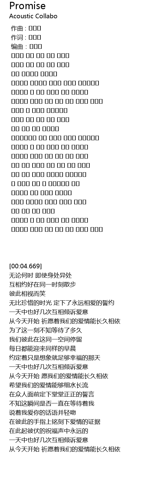 | 歌曲 | Promise |