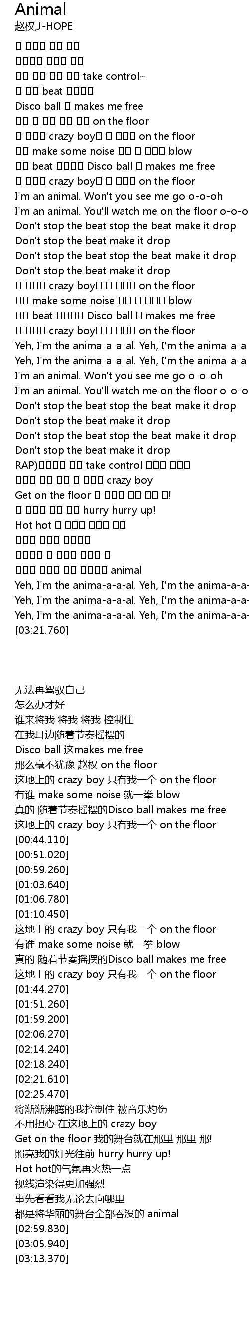 | [03:13.370] | Yeh, I'm the anima-a-a-al. Yeh, I'm the anima-a-a-al |