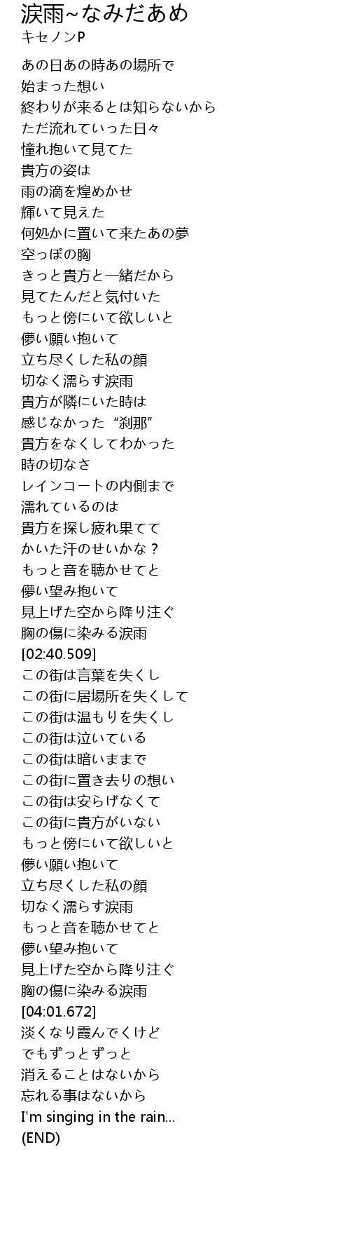 | [03:37.038] | 切なく濡らす涙雨 |