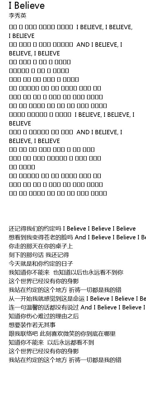 | [00:31.28] | 그대 그 약속을 기억하고 있을까요 I BELIEVE, I BELIEVE, I BELIEVE |