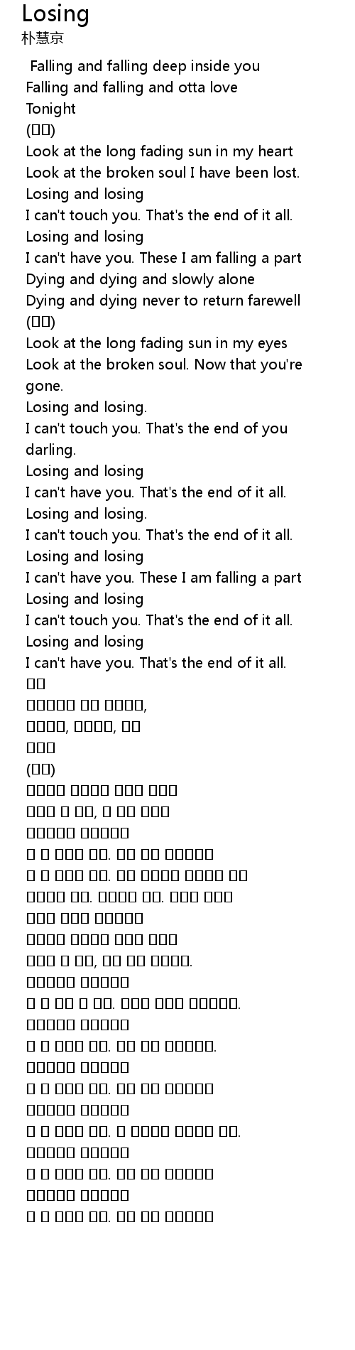 | 만 널 가질수 없어. 난 조각으로 떨어지고 있어. | |