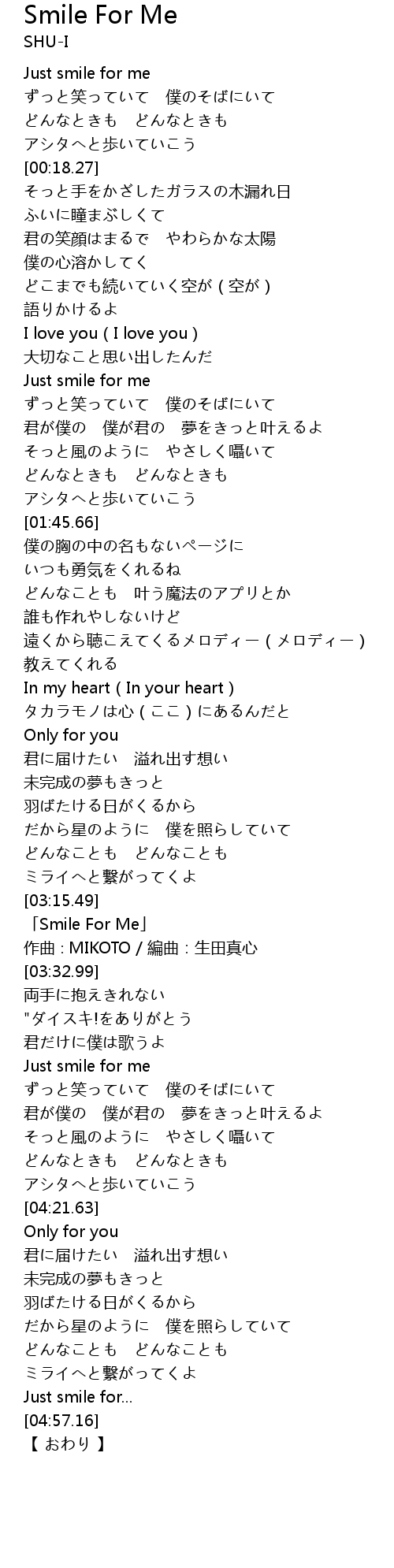 | [01:15.67] | ずっと笑っていて 僕のそばにいて |