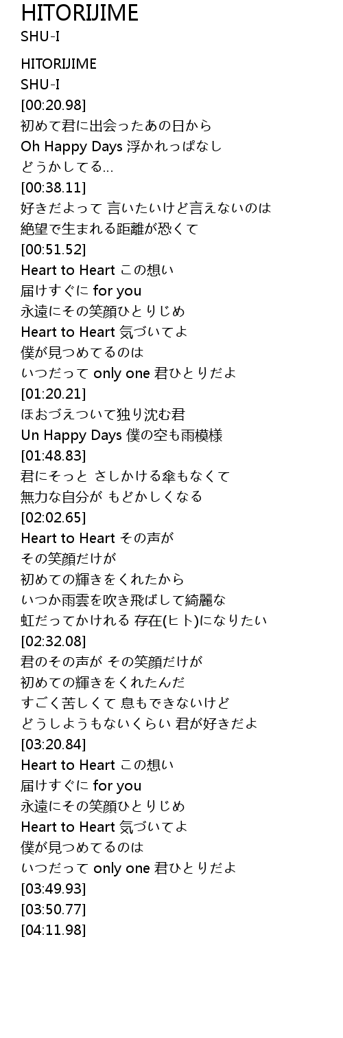 | [02:02.91] | Heart to Heart その声が |