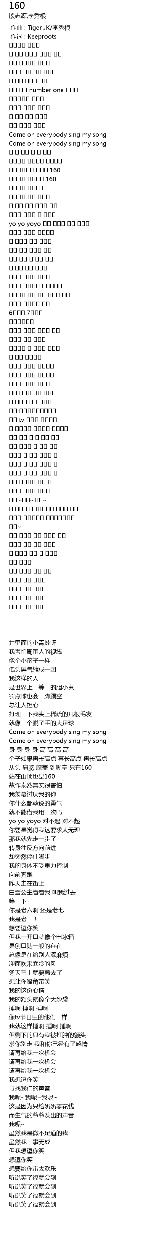 | [00:36.21] | 从头 肩膀 膝盖 到脚掌 只有160 |