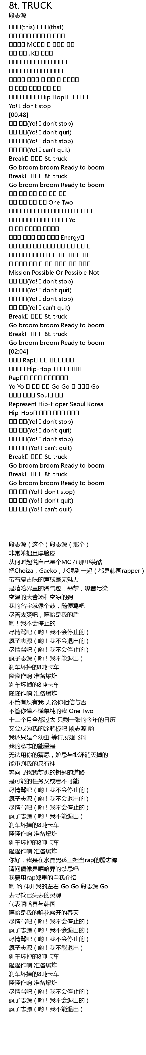| 歌曲 | 8t. TRUCK |