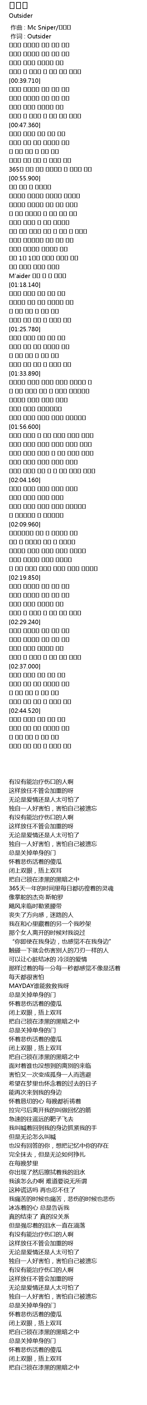 | [00:01.00] | 作词 : Outsider |