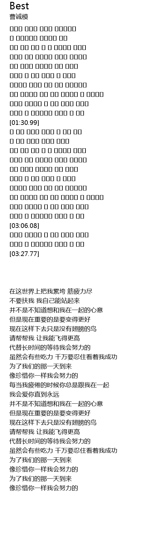 | [03:19.98] | 像珍惜你一样我会努力的 |