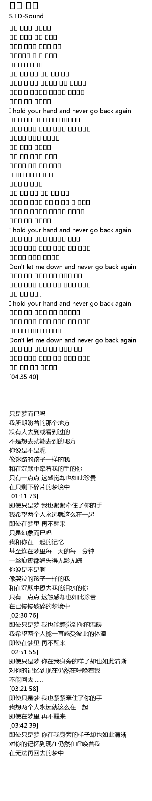 | [03:58.22] | 다시 가지 못할 꿈속으로 |