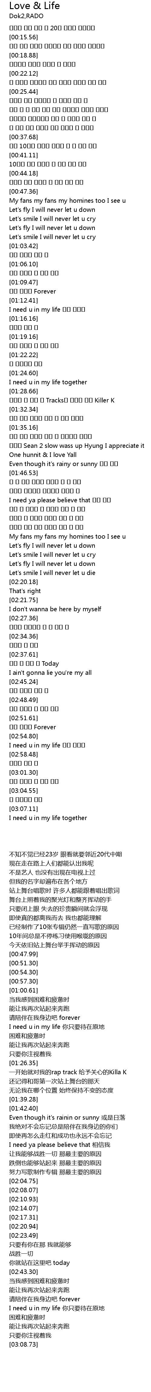 | [01:29.47] | 첨으로 내 랩과 내 Tracks에 관심을 줬던 Killer K |